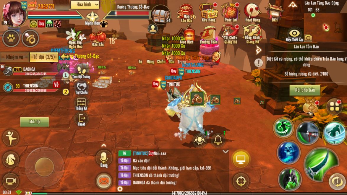 Rương Thượng Cổ: Trong quá trình khiêu chiến, cảnh sẽ tạo mới 100 Rương, trong đó gồm Rương Thượng Cổ-Bạc và Rương Thượng Cổ - Vàng, diệt 2 loại tương được nhận thưởng nhiều Xu.
