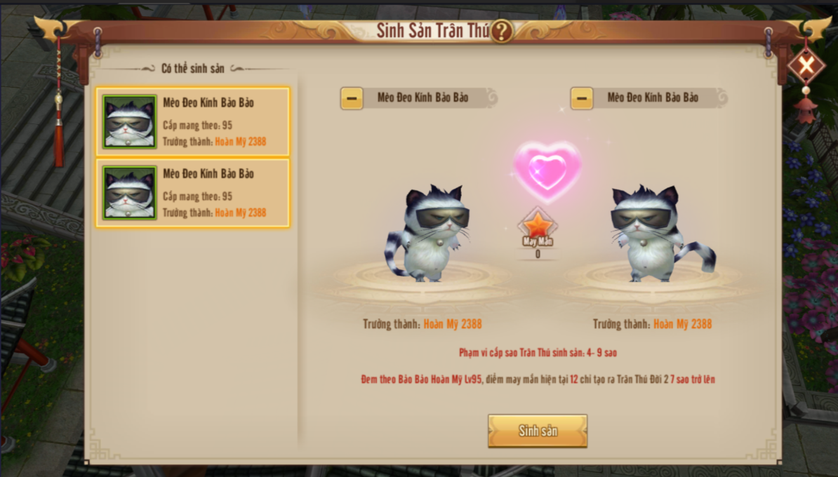 Ngoài ra, Huynh Tỷ sẽ nhận được Mảnh Gốm Cổ từ Boss Trấn Bảo Long Vương để nhận được Trân Thú Mặc Kính Miêu Bảo Bảo theo 5 cấp độ: