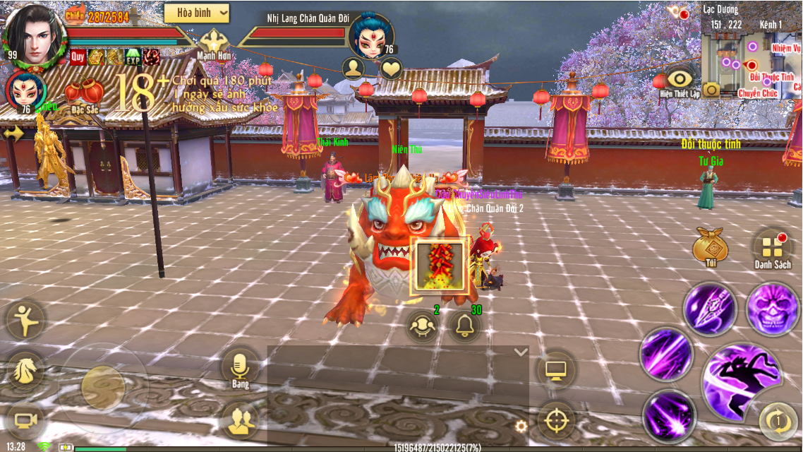 Nội dung: Huynh Tỷ có thể nhận được pháo Tết thông qua các phó bản hằng ngày, mỗi ngày vào lúc 12:00, 15:00, 18:00, 21:00, 22:00 Niên thú sẽ xuất hiện tại Tô Châu hoặc Lạc Dương. Khi đến giờ hãy dùng pháo Tết để xua đuổi Niên Thú để nhận nhiều phần quà hấp dẫn..